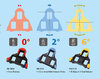 Die Festigkeit ist darauf ausgelegt, einen perfekten Verbund mit SPD-SL Pedalen zu ergeben. Diese Platten weisen die für SPD-SL Pedale geeignete Form auf. Die zum Gehen geeignete Ausführung weist rote Aufstandspunkte auf. Diese verhindern Verschleiss des in die Bindung eingreifenden Plattensegments.Bewegungsmöglichkeit: Front